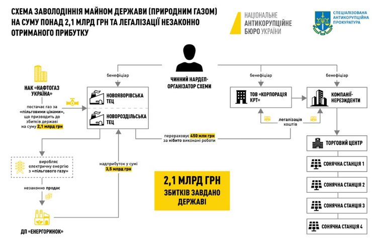 Вони уклали угоду щодо закупівлі у "Нафтогаз України" природного газу за пільговою ціною. Учасники схеми закуплений дешевий газ вирішили використовувати не для виробництва тепла для населення, а для приватного бізнесу. Через підприємство "Енергоринок" його реалізували за ринковою ціною. Учасники схеми, за розрахунками НАБУ, отримали понад 3,5 млрд гривень. Цей дохід вважається незаконним.