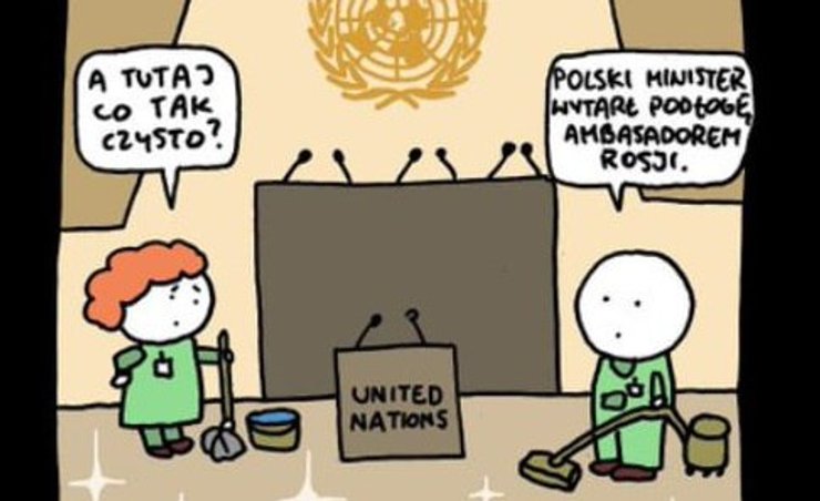 Очільник Міністерства закордонних справ Польщі Радослав Сікорський карикатурою висміяв представника Росії в ООН Василя Небензю. Про це пише видання BILD.