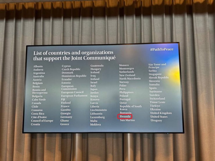 Руанда стала третьою країною після Іраку та Йорданії, чий підпис зник під спільним комюніке Глобального саміту миру. Загалом документ підтримали 82 делегації.
