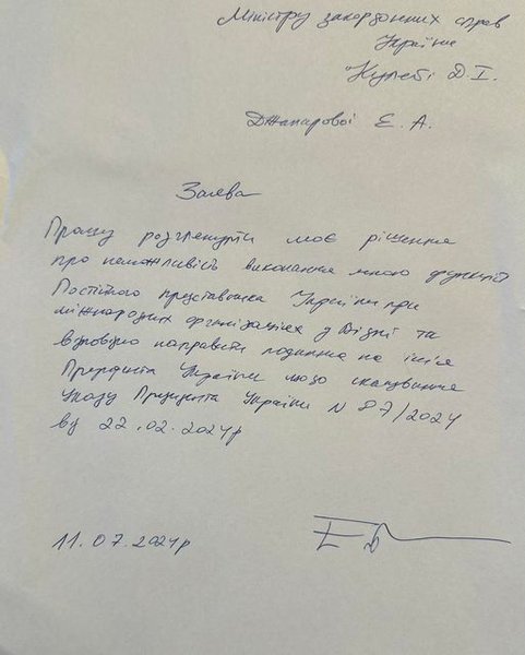 Джапарова написала заяву про відставку з МЗС: фото та подробиці