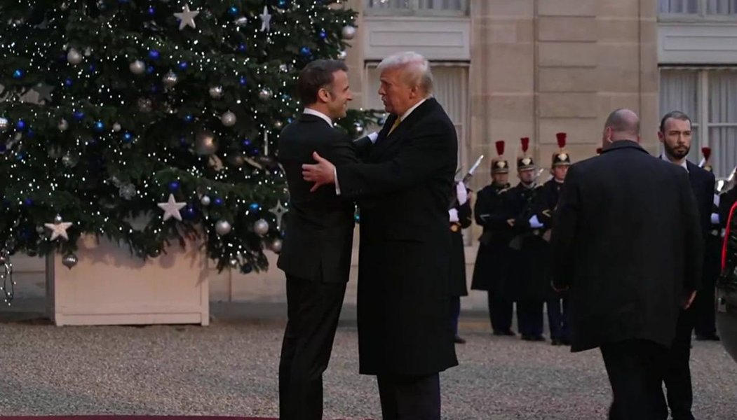 Після прибуття Дональд Трамп обмінявся обіймами та кількома рукостисканнями з Емманюелем Макроном.