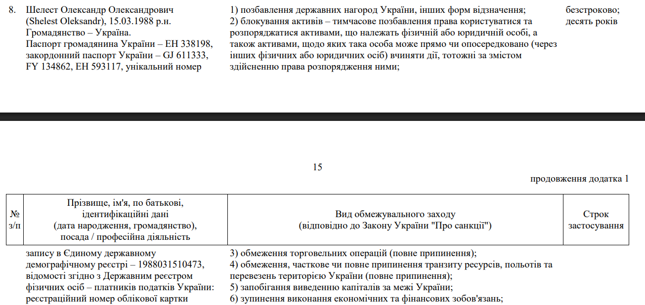 Зазначених осіб очікує блокування активів, позбавлення державних нагород, обмеження торгівельних операцій, запобігання виведенню капіталів, зупинка виконання економічних і фінансових зобов'язань та заборона розповсюдження медіа на території України.