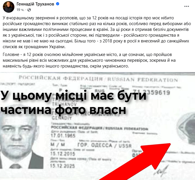 Ба більше, у Facebook чиновник знову написав про те, що історія з його громадянством не нова.