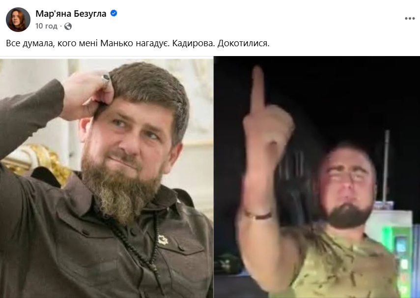 До того Валентин Манько на своїй сторінці відповів на допис Мар'яни Безуглої, в якому вона порівняла його з Кадировим.