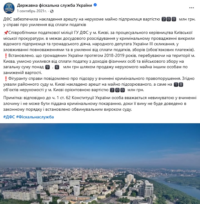 За версією слідства, нардеп III скликання Верховної Ради України протягом 2018-2019 років ухилився від сплати податку з доходів фізичних осіб та військового збору на суму понад 9,6 мільйона гривень шляхом продажу нерухомості іншим особам за заниженою вартістю.