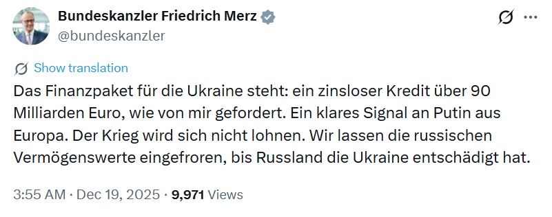 Нагадаємо, 18 грудня агентство Укрінформ передало слова прем’єр-міністра Польщі Дональда Туска, який повідомив, що лідери ЄС погодилися на надання Україні репараційної позики.