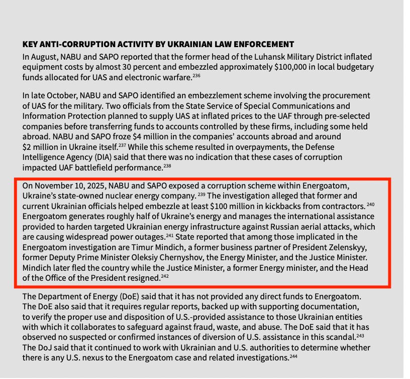 Окремо у звіті згадується справа, пов’язана з можливими зловживаннями в Енергоатом. У цьому контексті, за наведеними даними, фігурує бізнес-партнер президента України Володимир Зеленський — Міндіч.