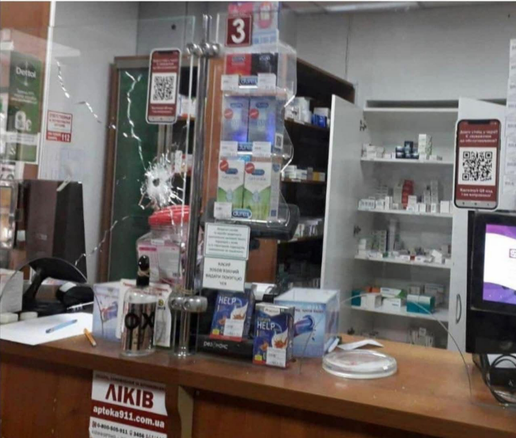Аптека в Липцях, де під час чергового обстрілу був поранений фармацевт