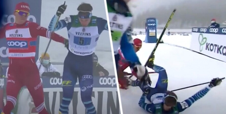 Російський лижник спочатку вдарив суперника палицею, а потім збив його з ніг.