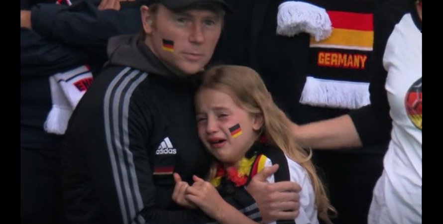На матчі Німеччина-Англія в обʼєктиви фотокамер потрапила дівчинка, яка плакала, з прапором Німеччини на обличчі. Її команда програла Англії. У відповідь один з жителів Британії організував збір коштів для благодійності. Про це пише BBC.