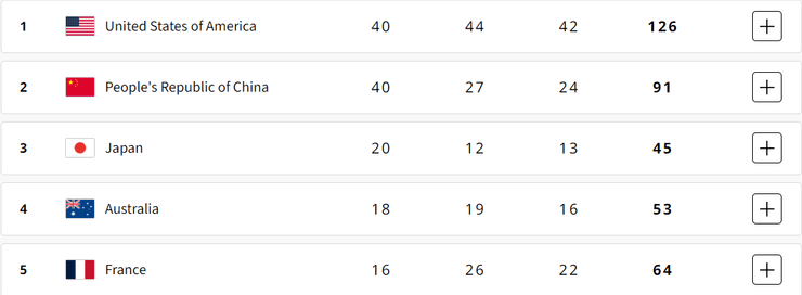 Завдяки "золоту" жіночої збірної з баскетболу, США очолили медальний залік Олімпіади-2024. Китай опинився на другому місці, Японія — на третьому. Україна фінішувала на 22-му місці.