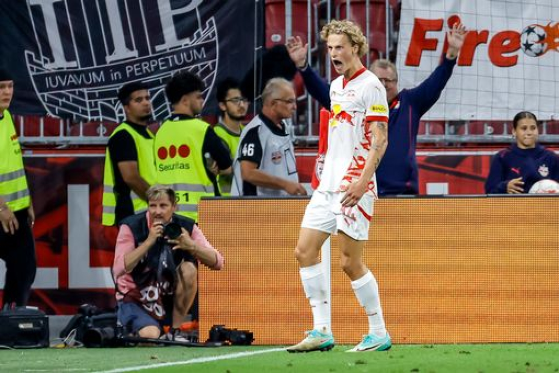 70 ХВИЛИН ДО МАТЧУ. Маурітс К'єргор — півзахисник австрійського "Зальцбурга" (ймовірного суперника переможця матчу в Глазго) — святкує свій гол у ворота "Твенте".