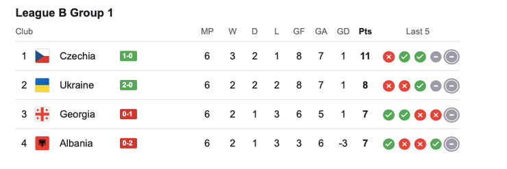19. У паралельному матчі Чехія вийшла вперед у матчі проти Грузії, завдяки чому Україна – на другому місці.
