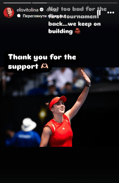 "Непогано для першого турніру після повернення. Продовжуємо будувати. Дякую за підтримку", — написала тенісистка.
