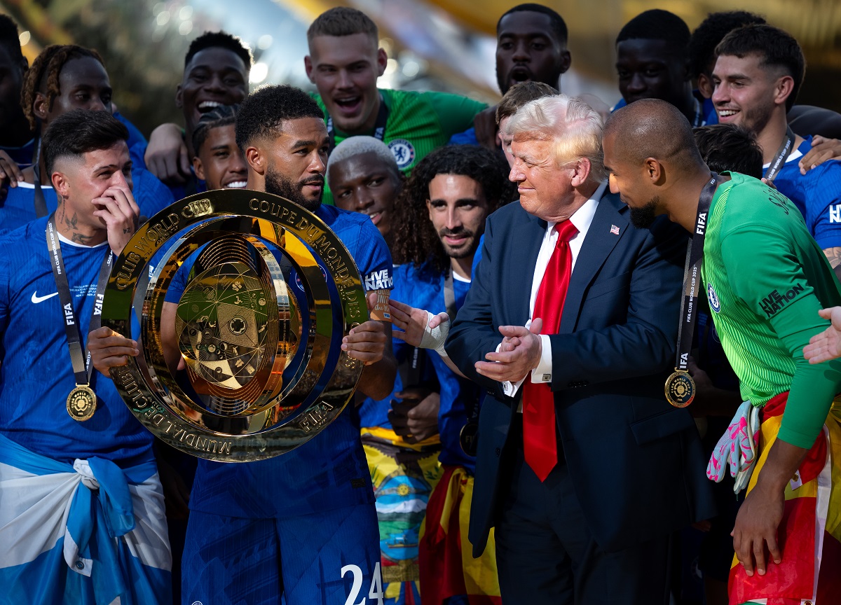 Президент США, який дивився матч із віп-ложі на стадіоні "Метлайф", спостерігав за тим, як ФК "Челсі" здобув перемогу над "ПСЖ" із рахунком 3:0. А потім "отримав" приз разом із командою-переможницею, пише Daily Mail.