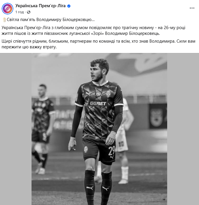 Слова співчуття родині та близьким футболіста також опубліковані на офіційній сторінці об’єднання професіональних футбольних клубів України "Прем’єр-ліга" у Facebook.