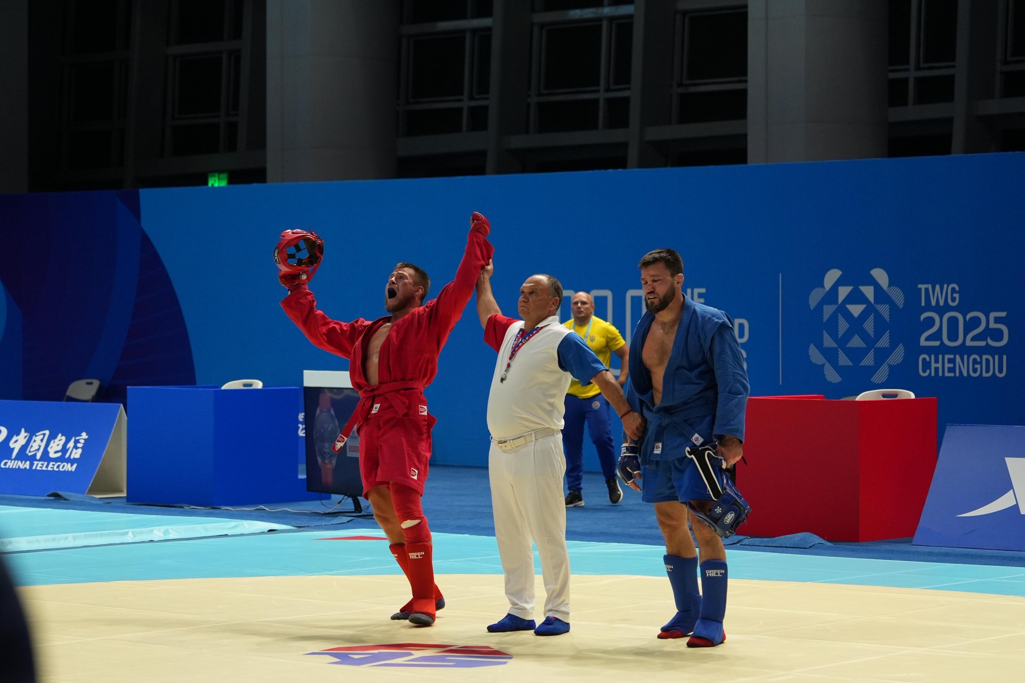Українські спортсмени Андрій Кучеренко, Владислав Руднєв і Петро Давиденко здобули першість у своїх вагових категоріях на змаганнях з бойового самбо на Всесвітніх іграх 2025 у Китаї. Їхні перемоги підняли Україну на третє місце в медальному заліку змагань.