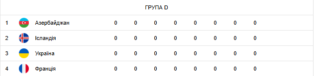 Турнірна таблиця групи D кваліфікації чемпіонату світу-2026: Азербайджан, Ісландія, Україна та Франція