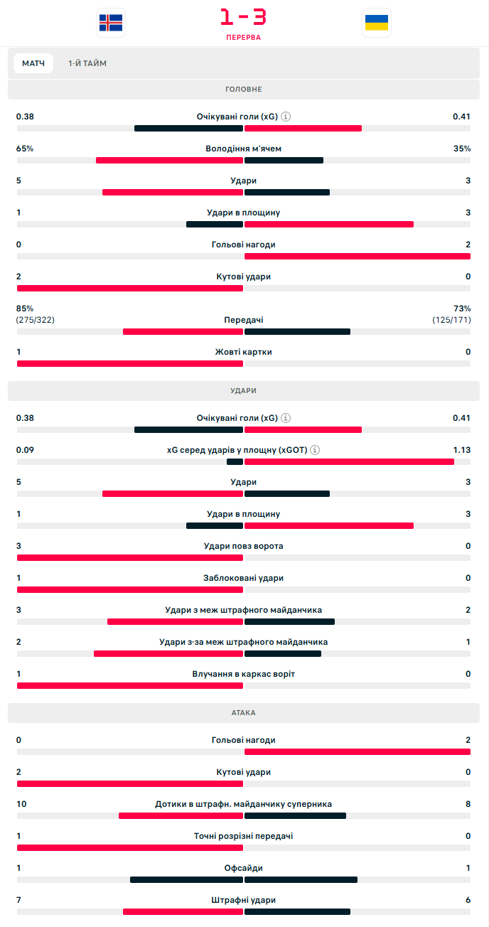Статистика після першого тайму: