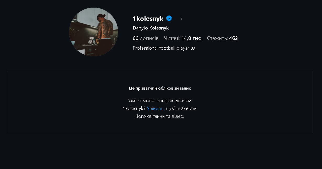 Футболіст ФК "Колос" закрив свій профіль в Instagram
