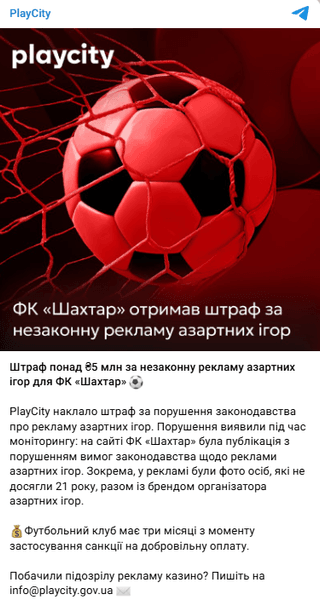 Причиною стала незаконна реклама азартних ігор, ідеться в повідомленні PlayCity.