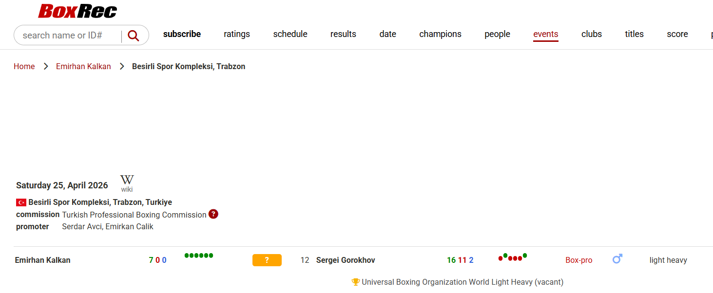 У турецькому місті Трабзон після бою боксера з Росії Сергія Горохова з місцевим улюбленцем Емірханом Калканом сталася масова бійка. Причиною стала надмірна реакція росіянина та його команди під час поєдинку.