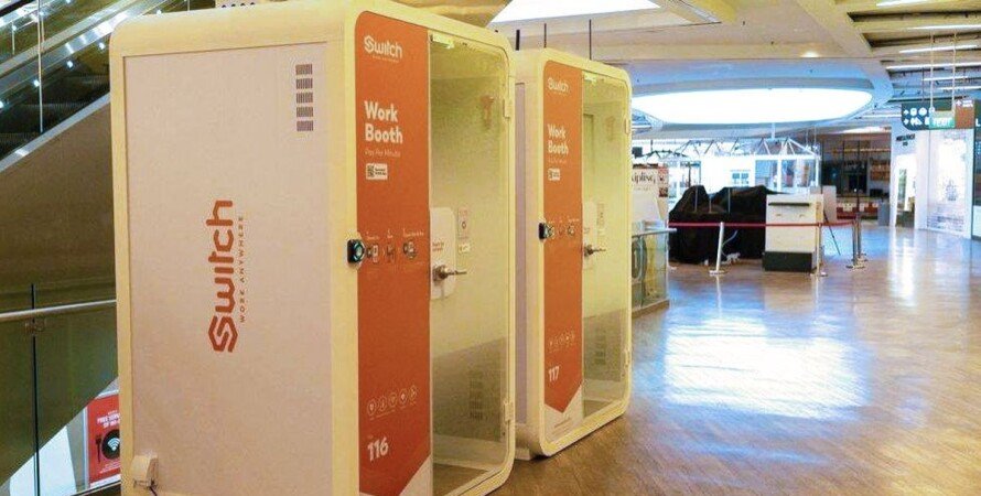 Компанія Switch (Сінгапур) створила для віддаленої роботи спеціальні кабінки, які знаходяться у торгових центрах і призначені для охочих розмежувати домашній і робочий простір.