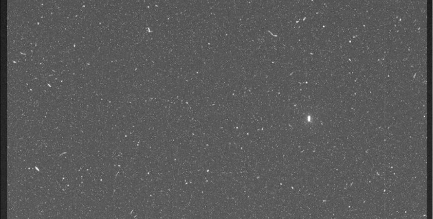 На фото видно зірки, сліди важких заряджених частинок, а також супутник Марса Фобос.