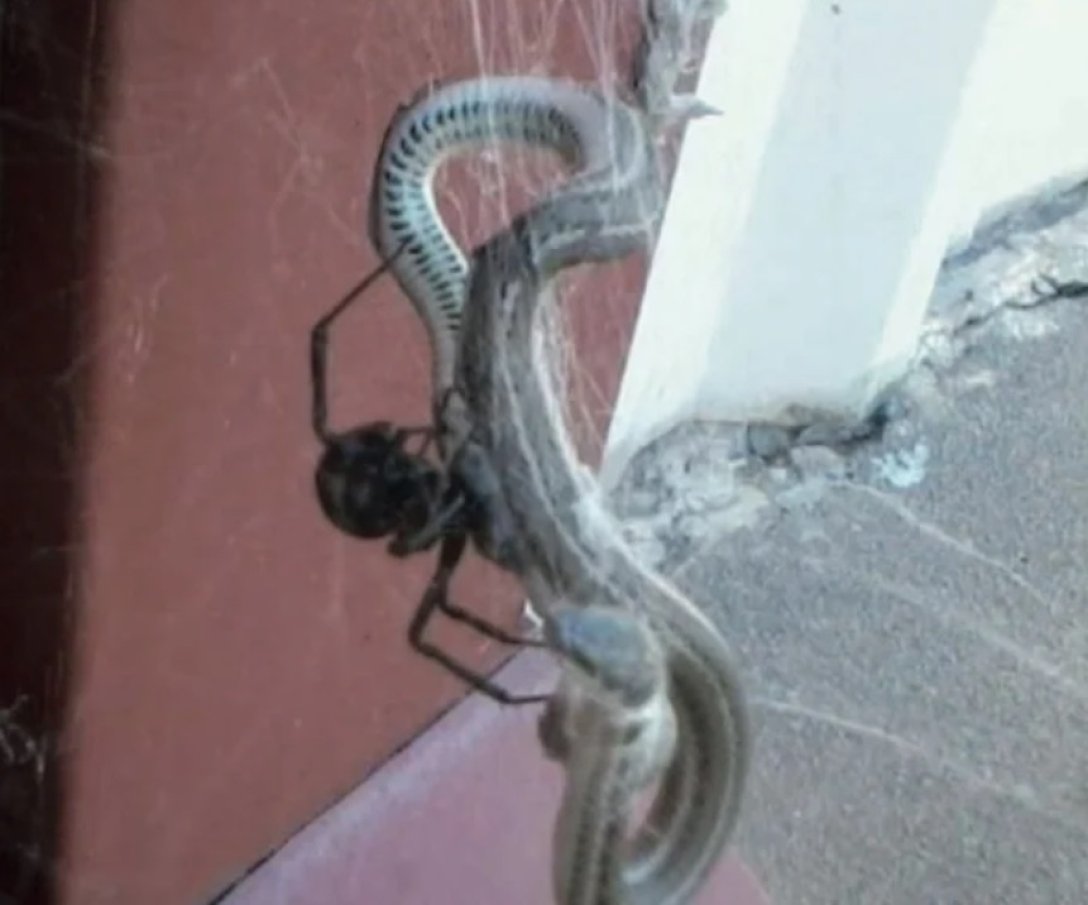 Після того, як змія вмирає, павуку може знадобитися кілька днів, щоб закінчити свою трапезу.