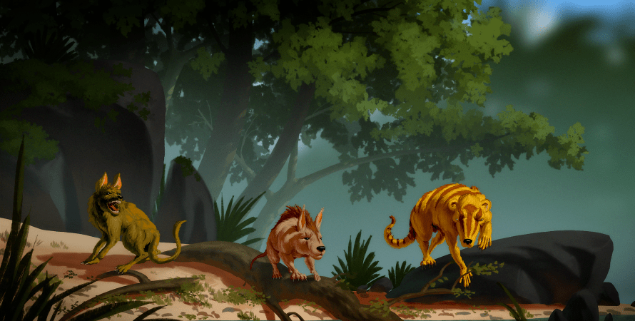 доісторичні істоти, малюнок, дерева