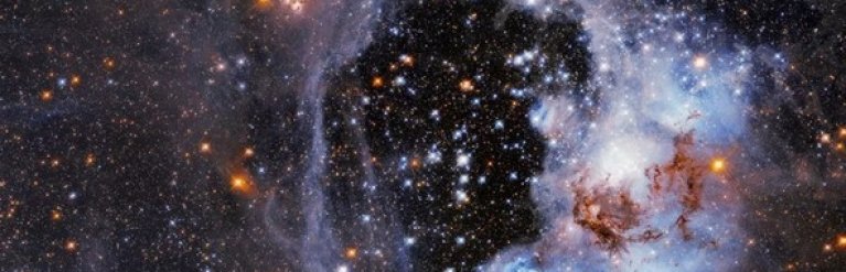 Астрономи за допомогою космічного телескопа Габбл отримали зображення туманності або газової хмари під назвою N44, що розташовані в прилеглій галактиці Велика Магелланова Хмара. На фотографії можна побачити газоподібний водень, що світиться в темряві, а також темні смуги пилу та зірки різного віку в складній структурі, яка розташована приблизно в 170 000 світлових років від Землі, повідомляє space.com