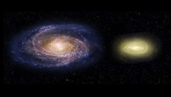 Художнє уявлення мертвої галактики (праворуч) у порівнянні з Чумацьким Шляхом