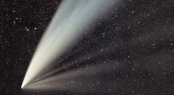 На знімку комети, яка летить на тлі зірок, видно, що її зовнішній вигляд змінився після зближення із Сонцем. Однією з найпомітніших особливостей є випарований матеріал крижаного твердого ядра комети. Коли комета наближається до Сонця, вона нагрівається, і її крижаний матеріал перетворюється з твердого на газоподібний. Цей процес створює довгі хвости і кому.