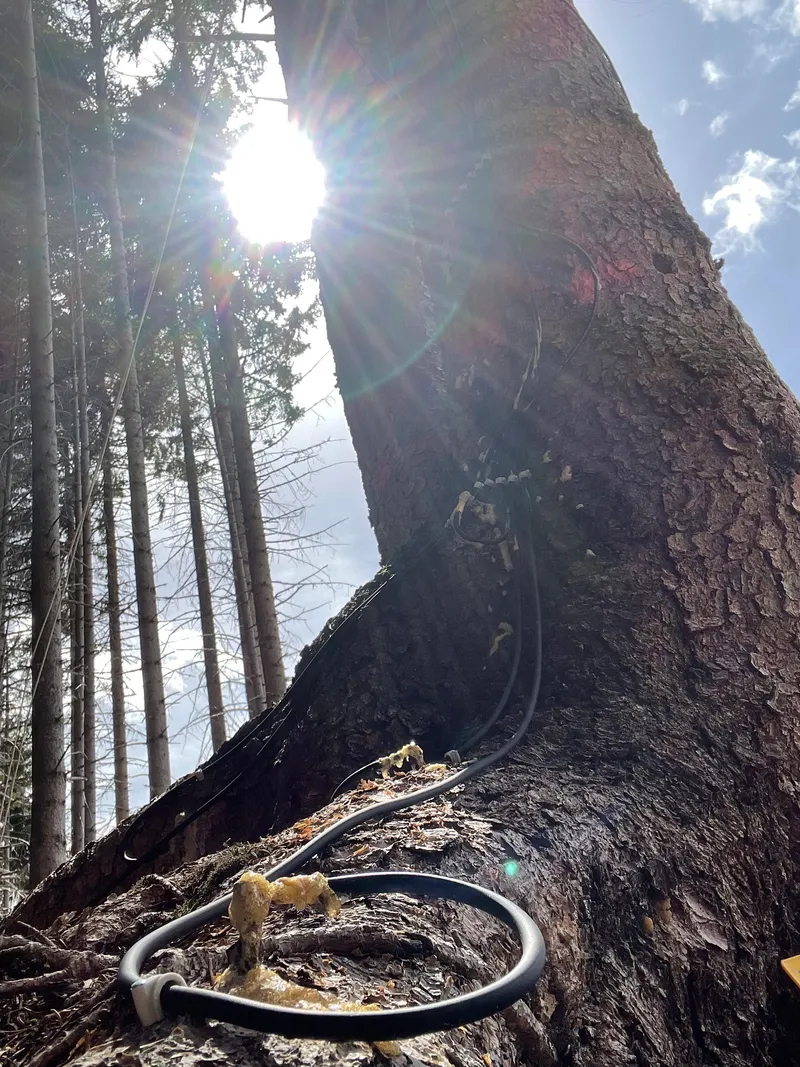 Щоб виміряти ці реакції, команда використовувала датчики, прикріплені до дерев різного віку