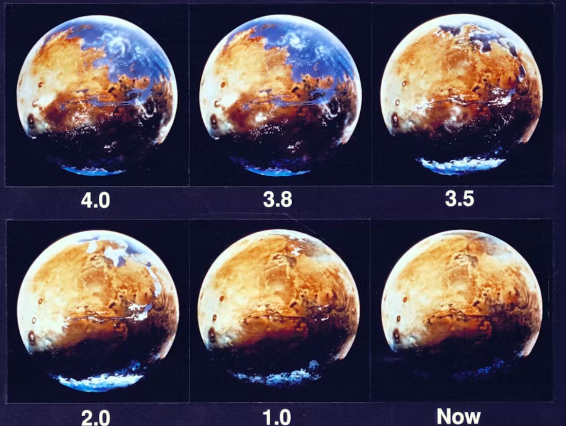 Учені кажуть, що Марс не завжди був схожим на червону пустелю. Мільярди років тому, в Нойський і Гесперидський періоди (4,1-3 млрд років тому), річки прорізали долини. Але магнітне поле Марса ослабло, що зробило його атмосферу тоншою, а більша частина поверхневої води зникла. Її частина випарувалася в космос, замерзла в полярних шапках, а також опинилася в пастці мінералів, залишаючись там і сьогодні.