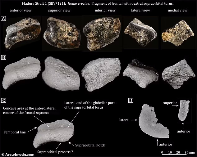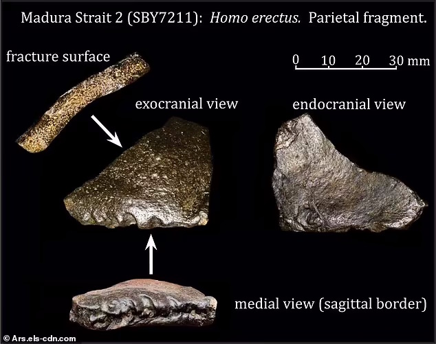 Два фрагменти черепа Homo erectus, лобову і тім'яну кістки, було порівняно з відомими скам'янілостями Homo erectus зі стоянки Самбунгмакан на Яві — близький збіг підтверджує, що скам'янілості з Мадурської протоки належать Homo erectus. Це істотно розширює відомий ареал проживання виду.