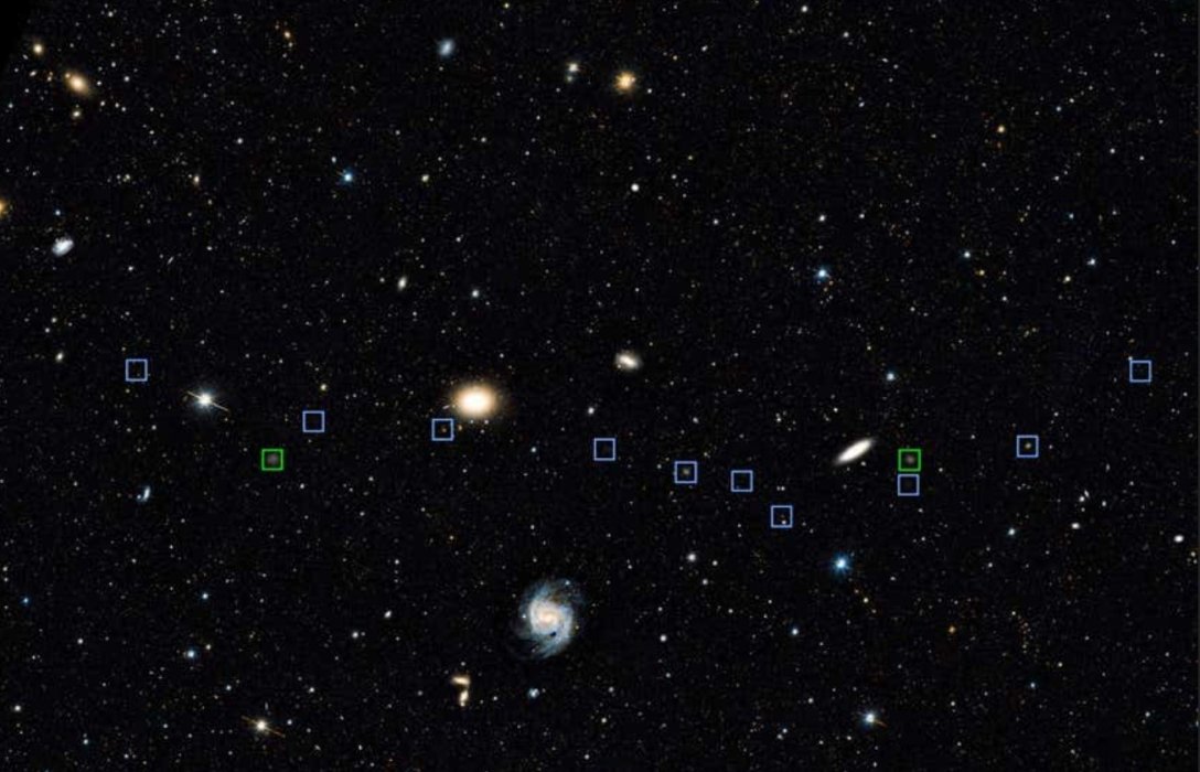 Астрономи використовували Обсерваторію Кека на Гаваях для вивчення унікальної лінії з 12 маленьких і тьмяних карликових галактик, що розташована на відстані приблизно в 75 млн світлових років від нас.