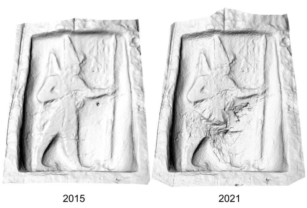 У 2019 році пам'ятка була серйозно пошкоджена вандалами, імовірно, мисливцями за скарбами. Пошкодження кислотою, сліди від свердління та обвал сходів ще більше загрожують цьому місцю.