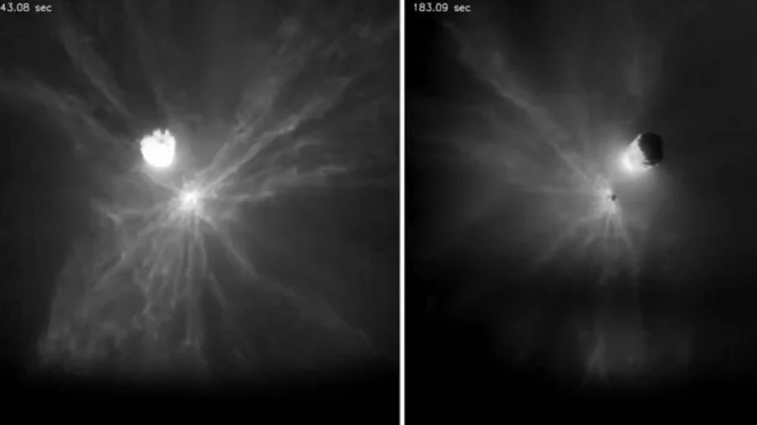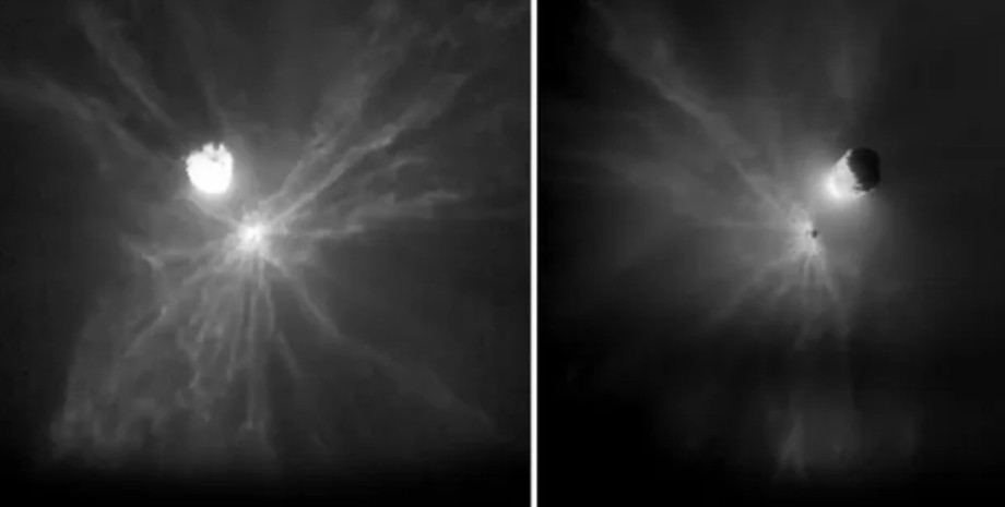 Після того, як апарат DART врізався в астероїд, невеликий зонд LICIACube, який відокремився від DART раніше, зробив зображення двох груп уламків, які полетіли в космос після удару зі швидкістю 52 м/с.