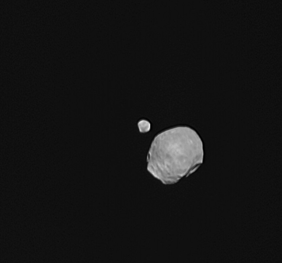 Зображення Марса, Деймоса і Фобоса було зроблено, коли зонд NASA перебував на відстані приблизно 800 000 км від Землі. У правій частині знімка видно Марс, де на полюсі планети можна побачити холодну полярну шапку, де температура становить приблизно мінус 120 градусів Цельсія. Фобос видно ближче до Червоної планети, а Демос — у лівому верхньому кутку знімка. Обидва супутники у 250 разів тьмяніші, ніж Марс, а тому вченим довелося збільшити їхню яскравість на знімку. Уперше Фобос і Деймос разом сфотографував космічний апарат Mars Express у 2009 році.