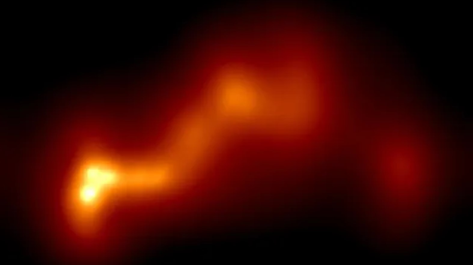 Струмінь, який вилітає з гігантської чорної діри, сильно викривлений, а це переконливий доказ того, що вона є найекстремальнішою з відомих подвійних чорних дір.