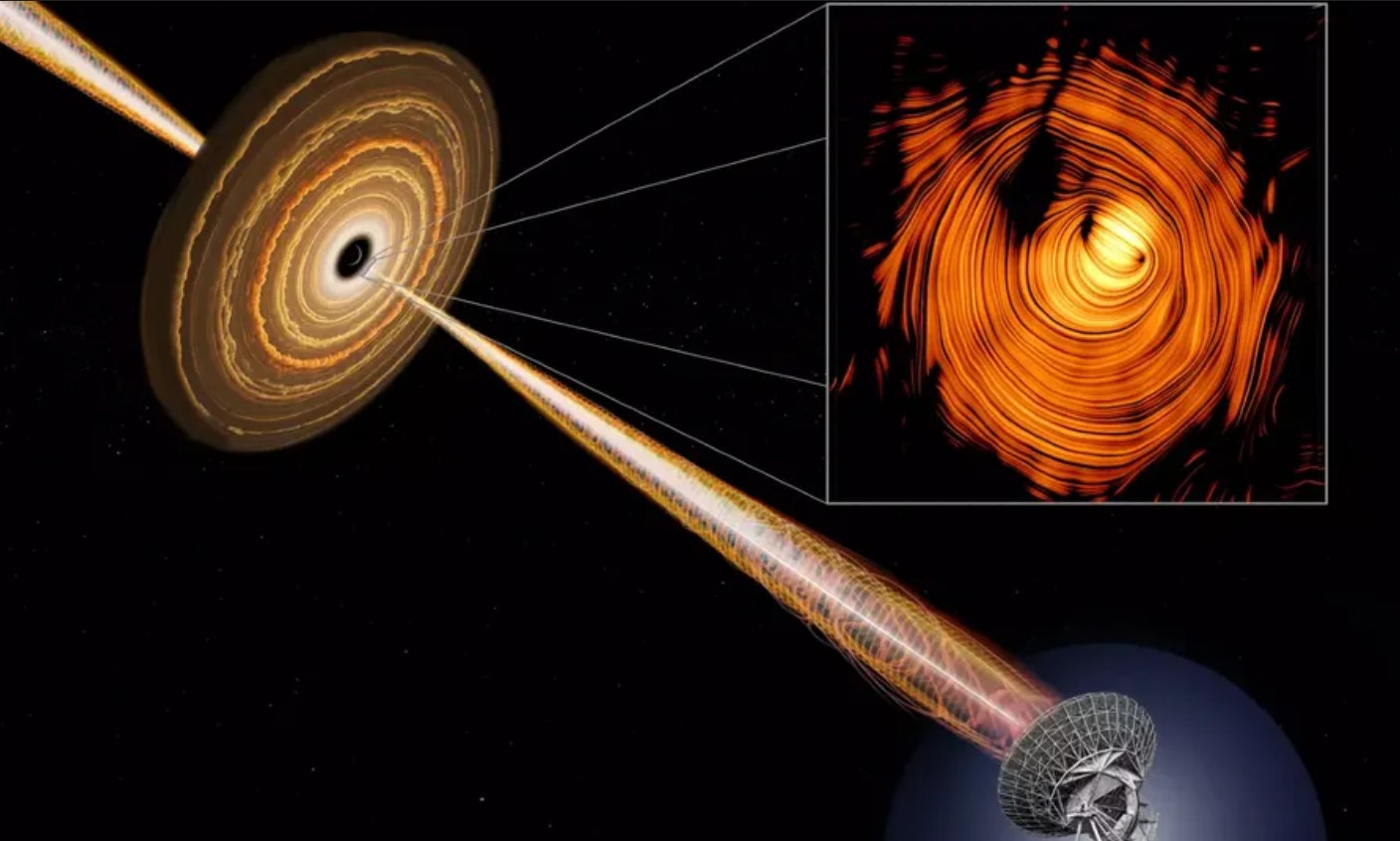 Астрономи за допомогою радіохвиль змогли візуалізувати магнітні поля всередині струменя блазара PKS 1424+240. Дослідники кажуть, що ніколи не бачили нічого подібного, адже вони виявили майже ідеальні тороїдальні магнітні поля в струмені, що спрямований прямо на нас.
