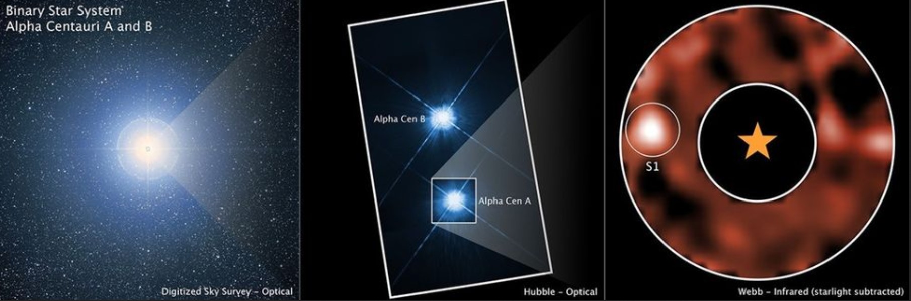 Астрономи за допомогою космічного телескопа Вебб виявили біля Альфа Центавра потенційну планету, названу S1, яка є газовим гігантом і має розмір Сатурна. Учені вважають, що ця планета перебуває в зоні населеності своєї зірки, тобто в цій зоні є умови для того, щоб там знаходилися потенційно населені світи. Але проблема в тому, що після того, як вчені виявили ознаки існування планети, подальші спостереження не підтвердили це. Розрахунки вчених показують, що, якщо ця планета існує, що її можна знову побачити тільки наступного року.