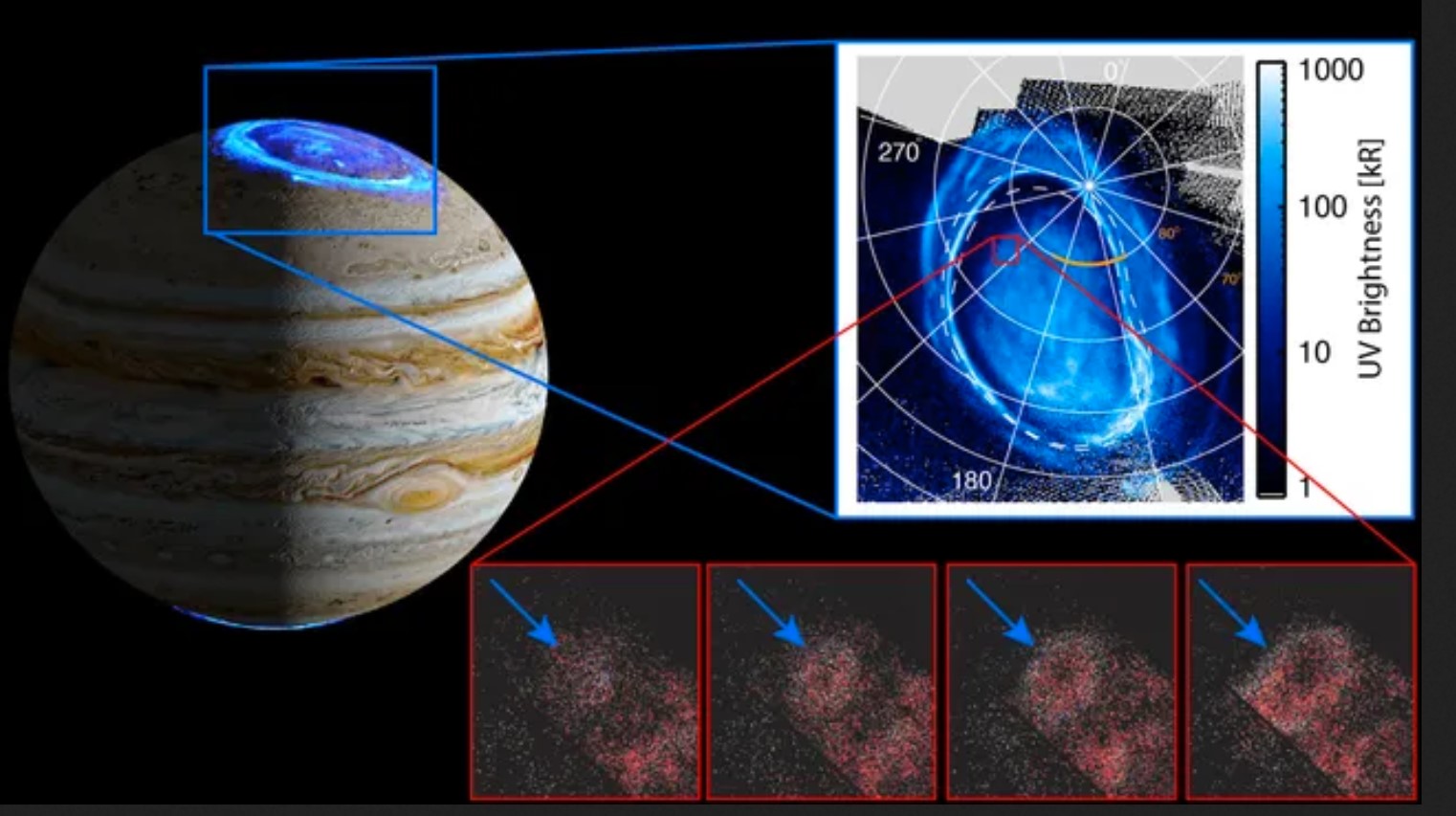 Астрономи з'ясували, що магнітне поле Юпітера спрямовує заряджені частинки не так, як це робить магнітне поле Землі. На нашій планеті полярне сяйво утворює кільцеподібні смуги навколо полюсів. Але на Юпітері заряджені частинки спрямовуються безпосередньо в полярну шапку, що призводить до створення більш концентрованих і хаотичних полярних сяйв.