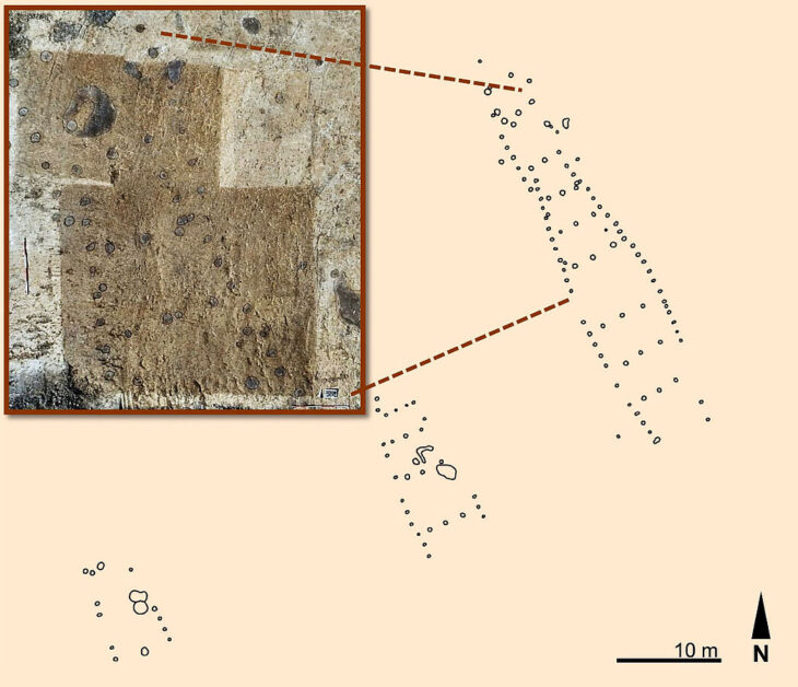 Археологи також виявили сліди пізнішої діяльності: стовпові конструкції залізного віку та фрагменти кераміки, які свідчать про те, що сільськогосподарські громади продовжували використовувати цю територію для зберігання та вирощування.