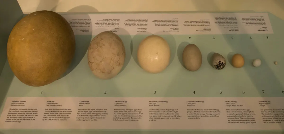 За словами вчених, яйця слонових птахів у середньому були приблизно в 150 разів більшими за середнє куряче яйце. Вони настільки великі, що Музей науки Буффало виявив у своїй колекції яйце, яке помилково маркували — настільки велике, що спочатку ніхто не вірив у його справжність.