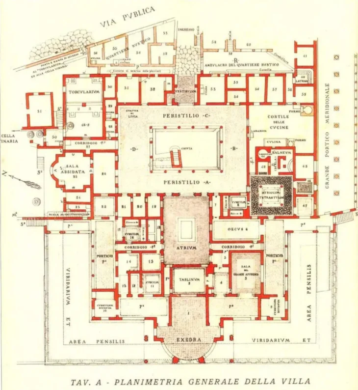 Серед знахідок були частини будівлі, запечатані після виверження 79 року н. е., фрески третього стилю з чорним і жовтим фоном, а також склепінчаста цистерна, пов'язана з розвиненою системою водопостачання.
