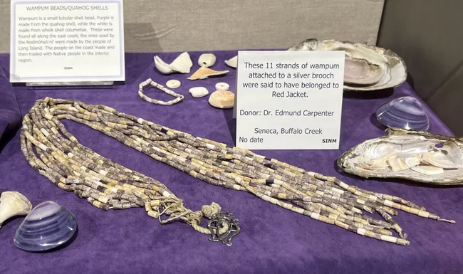 Вампум, англійський термін, запозичений з алгонкінського "wampumpeag", що означає "нитка білих намистин з мушель", мав багато застосувань у культурі корінних народів. Спочатку його вплітали в пояси та намиста на згадку про угоди, союзи та важливі події.