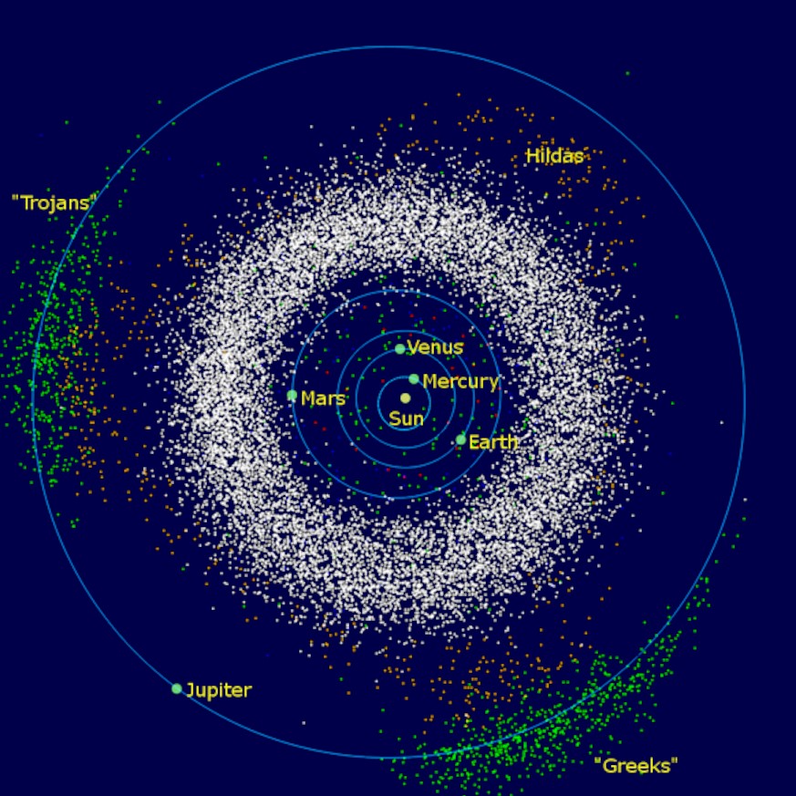 Головний пояс астероїдів вважається скупченням каміння, яке так і не перетворилося на планету 4,6 мільярда років тому під час формування Сонячної системи. Гравітаційний вплив Юпітера завадив це зробити. У результаті почали відбуватися руйнівні зіткнення між космічним і камінням. Вважається, що те, що залишилося сьогодні в головному поясі астероїдів, містить лише приблизно 3% маси Місяця, розкиданої на мільйони кілометрів.