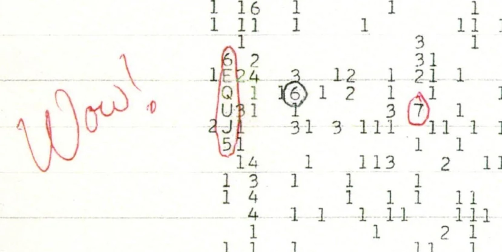 У 1977 році радіотелескоп Університету штату Огайо прийняв надзвичайний радіосигнал із глибокого космосу. Точне джерело радіосигналу визначити не вдалося, але його характеристики вказували на те, що це може бути повідомлення від потенційної інопланетної цивілізації. Астроном Джеррі Ейман роздрукував запис сигналу, який складався з групи символів і написав на роздруківці "Вау!", припускаючи, що інопланетяни вперше зв'язалися з нами. Відтоді цей сигнал так і називається — "Вау!". За останні 48 років учені так і не дійшли єдиної думки щодо джерела цього сигналу тривалістю всього 72 секунди.
